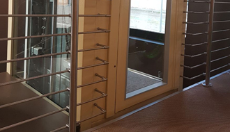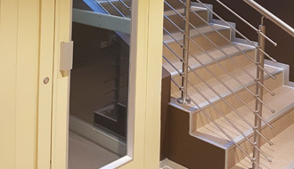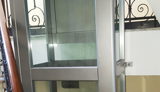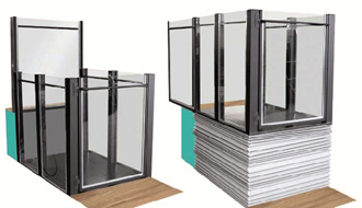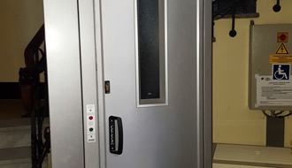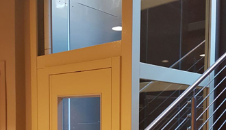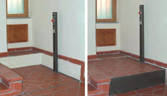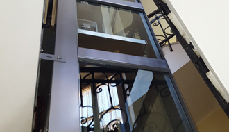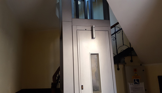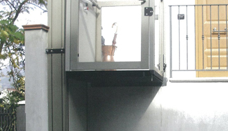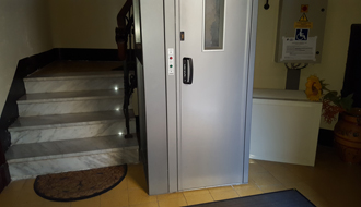Miniascensore con portata di circa 300 Kg e velocità di 0,15 m/s ad azionamento idraulico o elettrico, la centralina ed il quadro di manovra sono contenute in un armadietto.