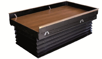 Piattaforma azionata da un sistema oleodinamico costituito da un cilindro all’interno del quale scorre un pistone azionato dalla pressione esercitata da una pompa.